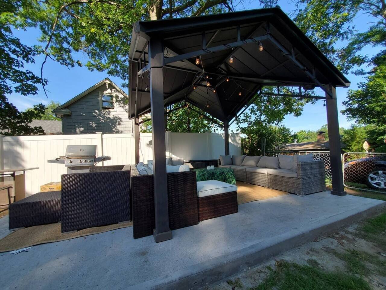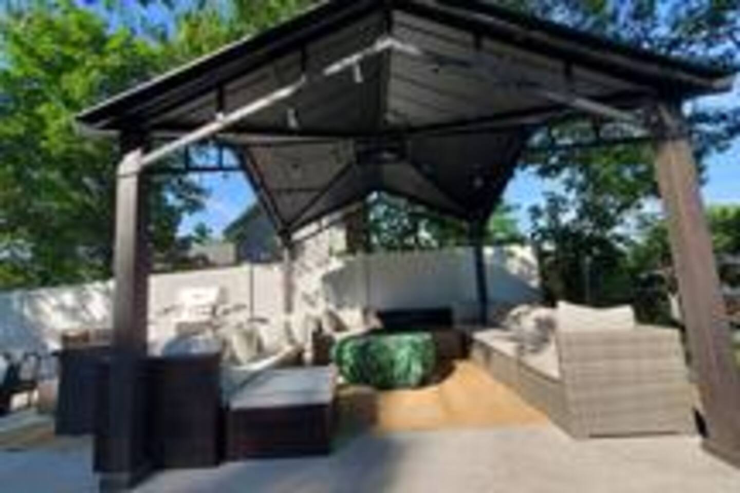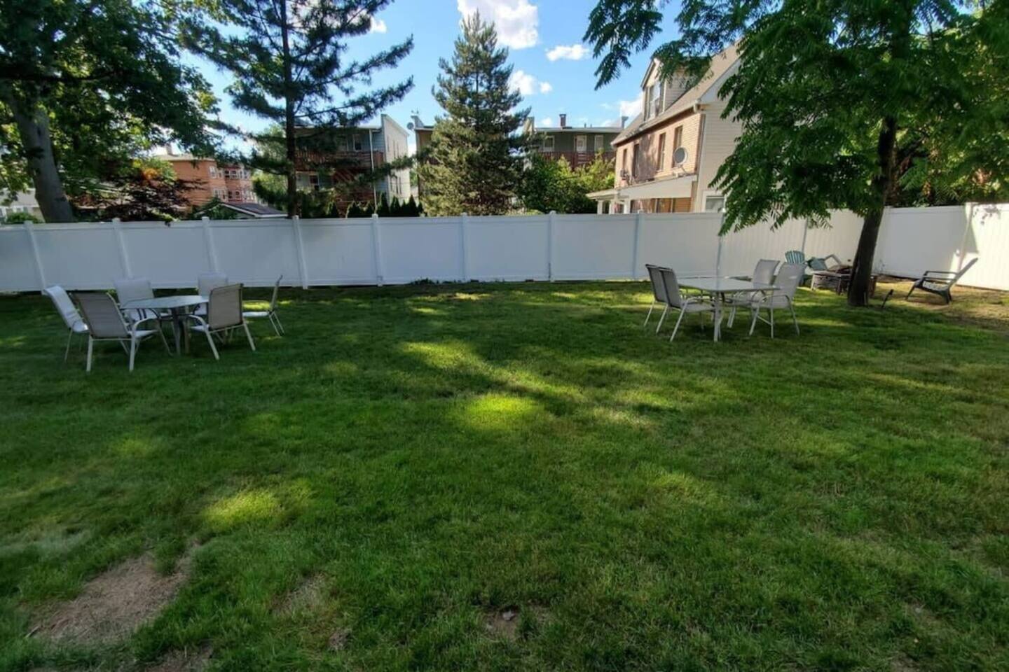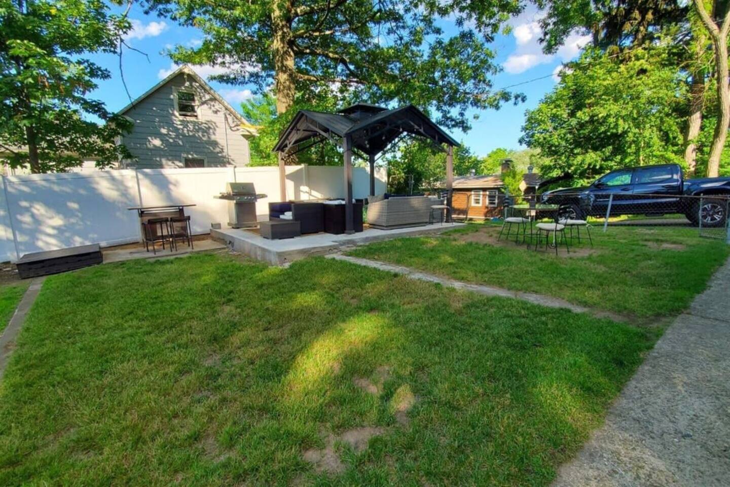 Welcome to a sun-filled first-floor home designed for relaxed family stays, featuring a private fenced yard and a covered dining pergola perfect for meals, playtime, and unwinding together. The apartment is located on the first floor for easy access and convenient entry.