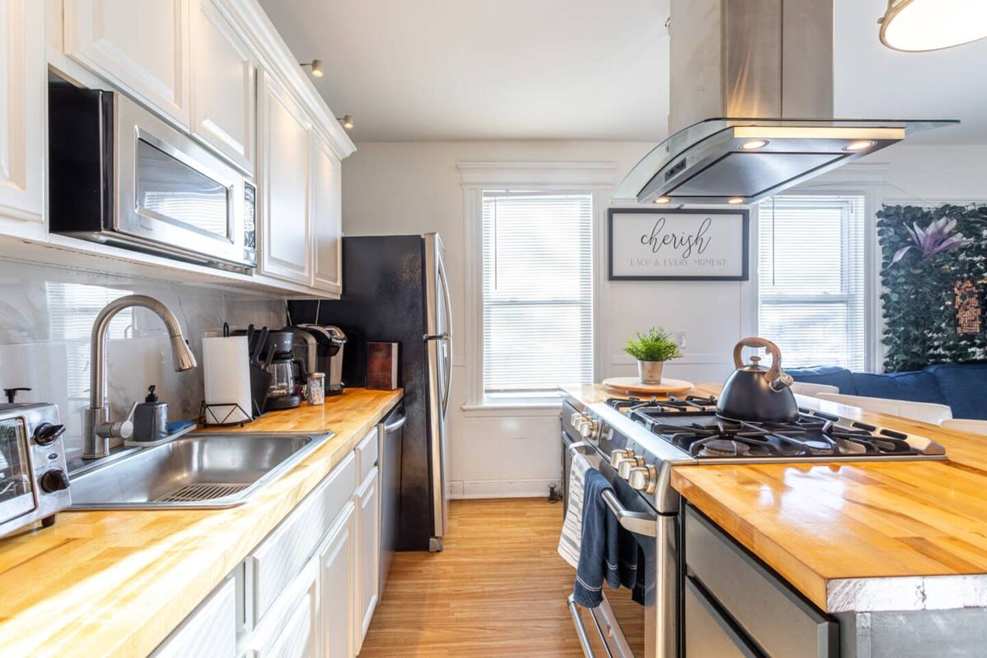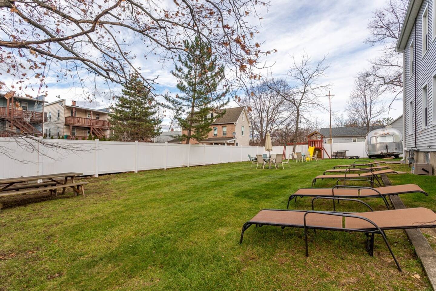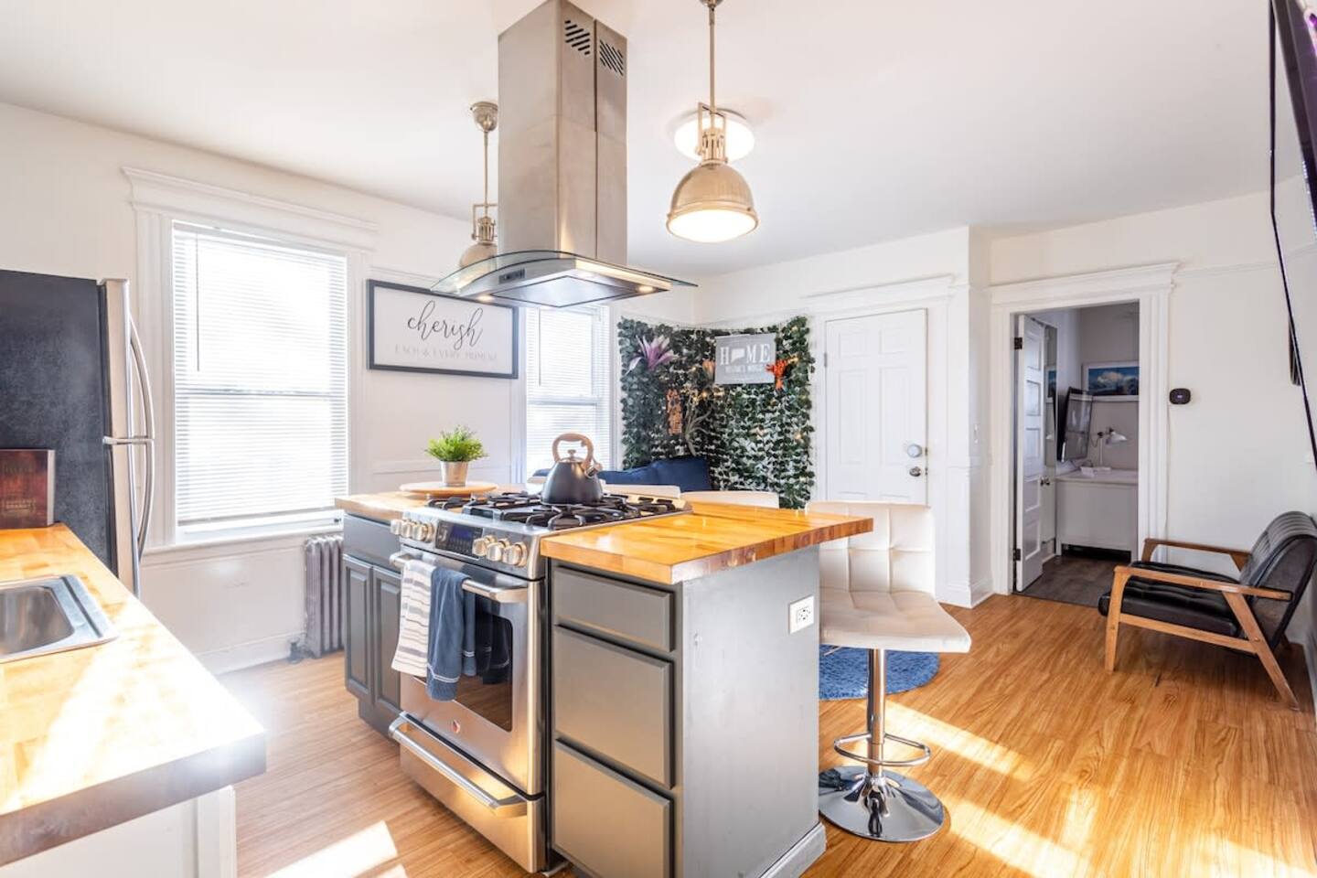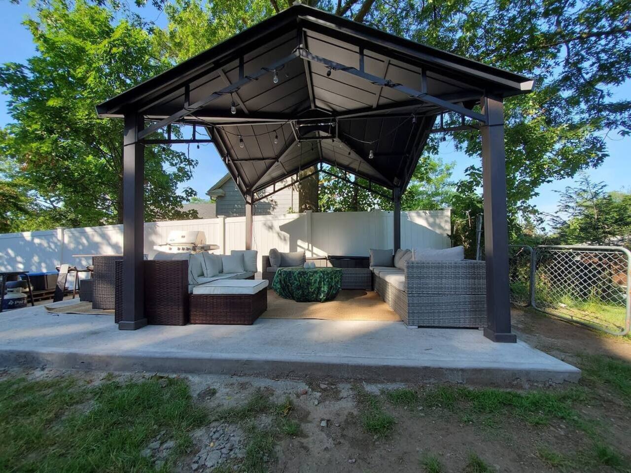 Welcome to a sun-filled first-floor home designed for relaxed family stays, featuring a private fenced yard and a covered dining pergola perfect for meals, playtime, and unwinding together. The apartment is located on the first floor for easy access and convenient entry.