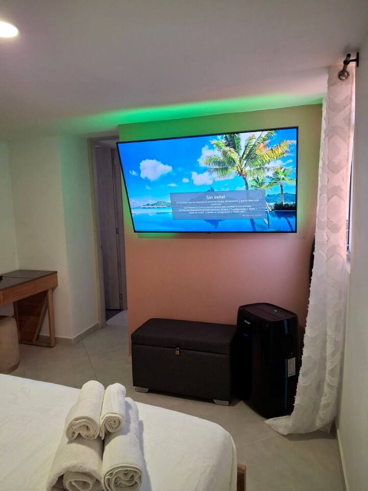 The neighborhood is spectacular! Located in the heart of Sabaneta, just 20 minutes from Medellín, you’re steps away from everything you need: 🍽️ restaurants, 🛒 supermarkets, 💊 pharmacies, 🍹 bars, 👗 clothing stores, and convenient 🚇 public transportation. The metro station is only 4 blocks away, making it easy to explore the best of Medellín and beyond. Enjoy the wide range of dining options and immerse yourself in the vibrant energy of this charming area! Book now to experience the best of Sabaneta and Medellín from an ideal, accessible location.